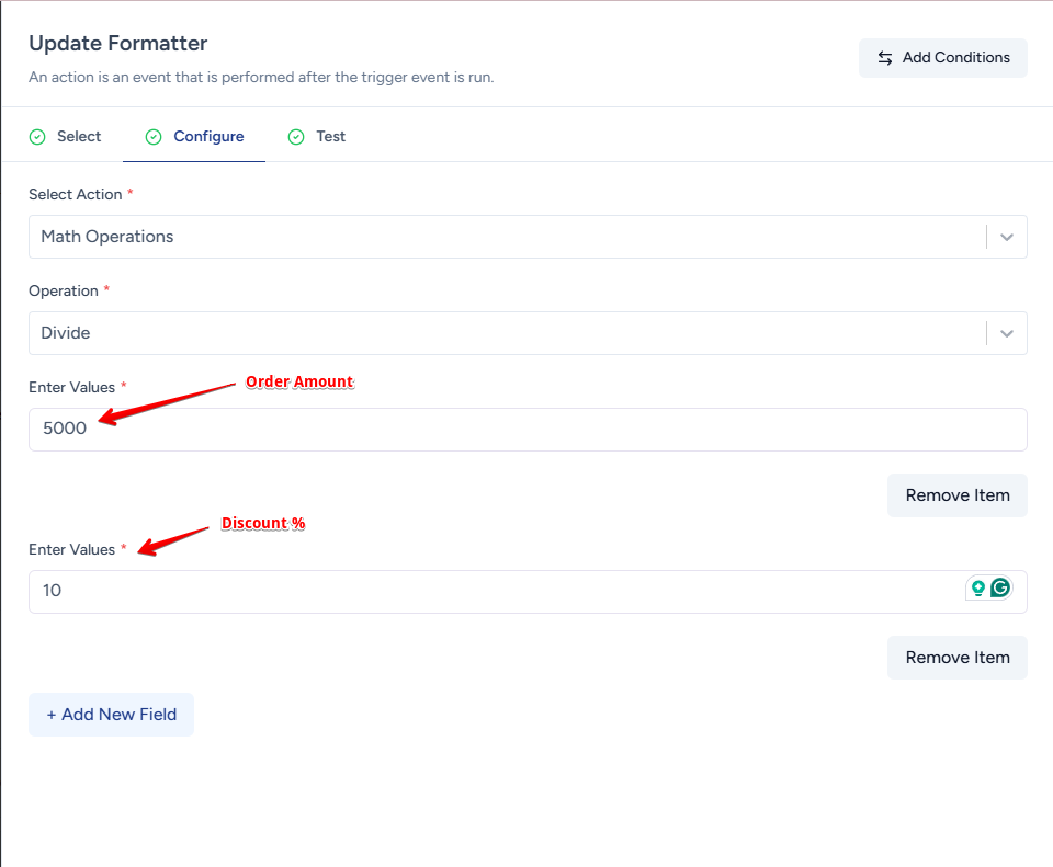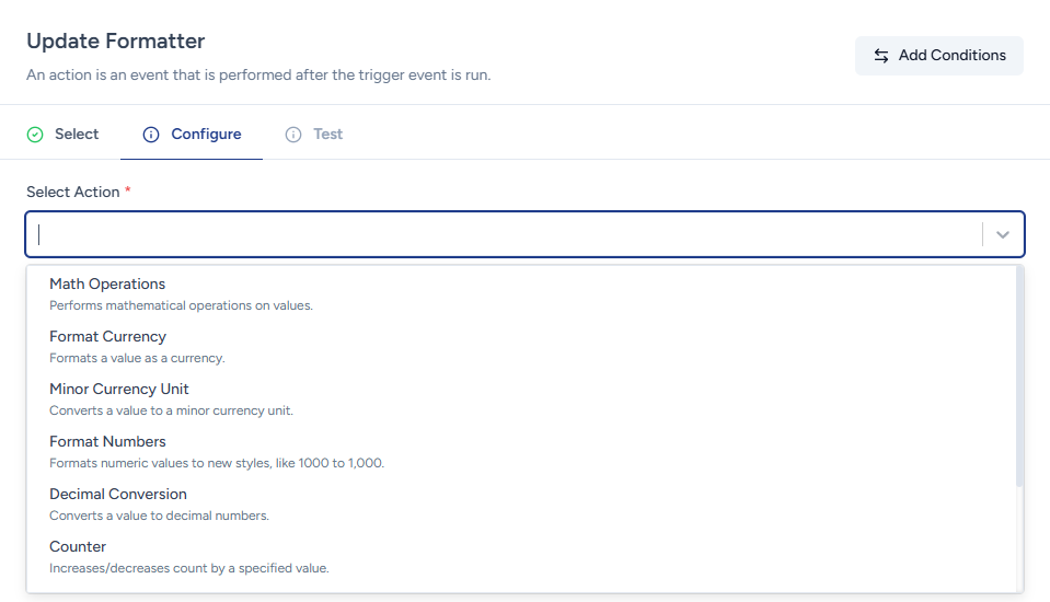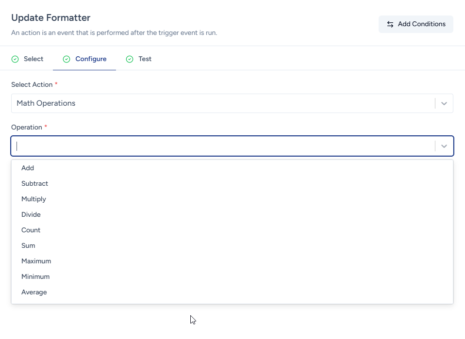 The Math Operations formatter allows you to perform mathematical calculations on numerical values within your workflows.