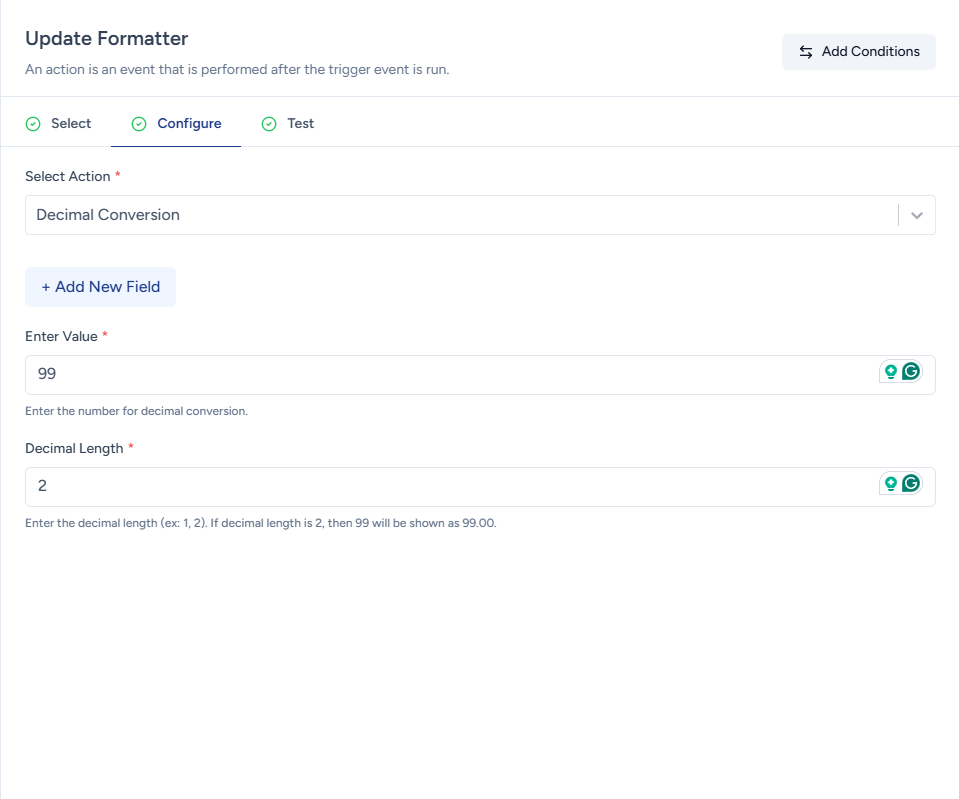 For example, if you receive inputs in real numbers (numbers without decimal points) format and you need to convert them to decimal for further processing, you can use the Decimal Conversion formatter to perform the conversion seamlessly.