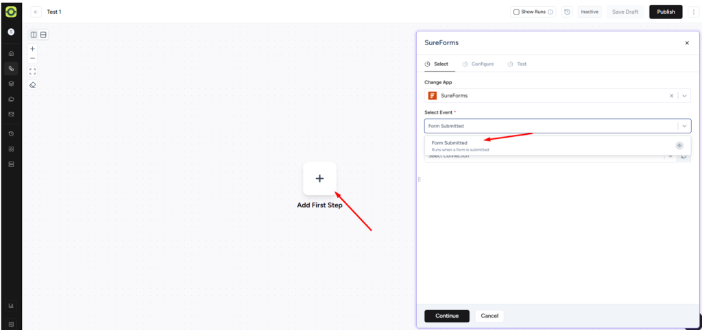 OttoKit provides a ‘Form Submitted’ trigger for SureForms that activates whenever a form is submitted.