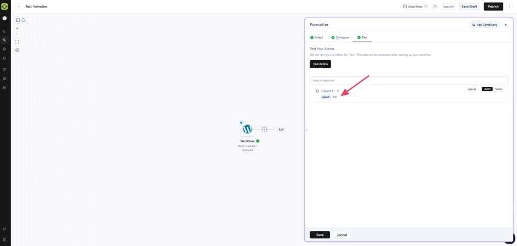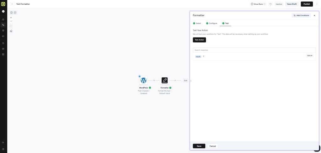 Unlike the “Word Count” action, this returns the total character count, including or excluding spaces as specified.
