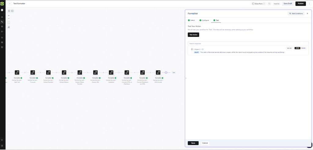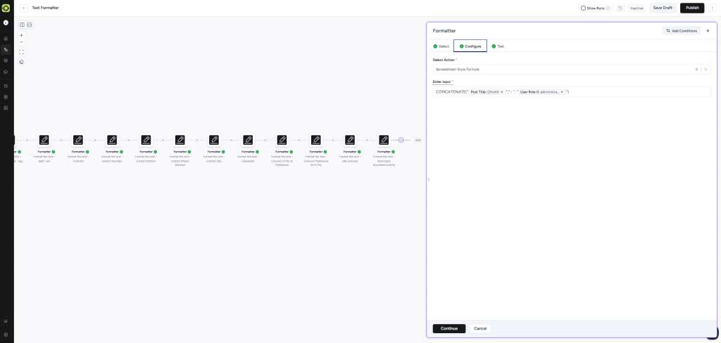 This action will process text using spreadsheet-style formulas and functions.