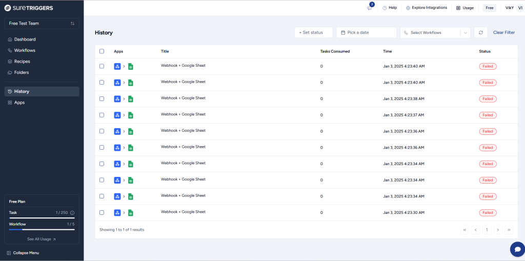 So if there are failed steps in your workflow, you can check for the failure reason and fix your automation.
