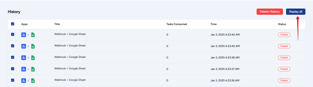 Once you’ve fixed the workflow, you can replay all the workflow runs that failed by following the simple steps mentioned below:-