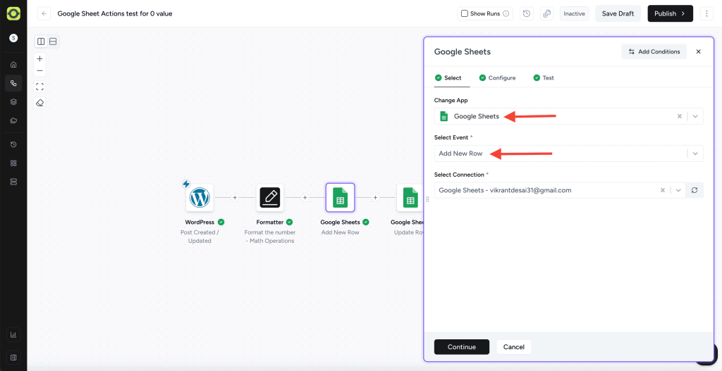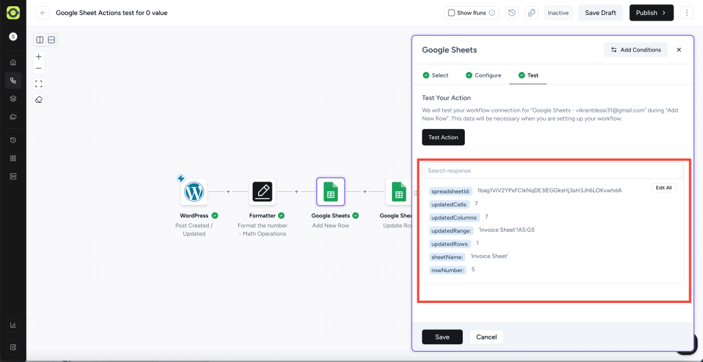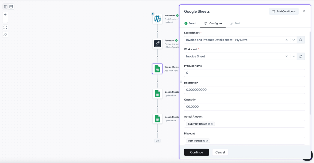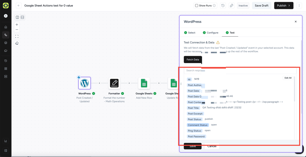 For example, the first name that comes via the WordPress-created post in the first name field of Google sheet, and so on.
