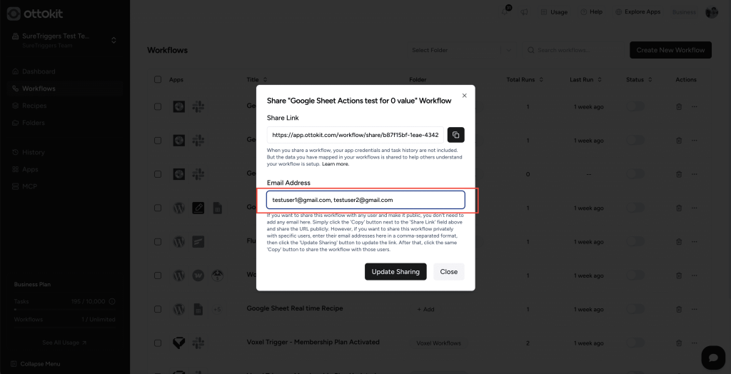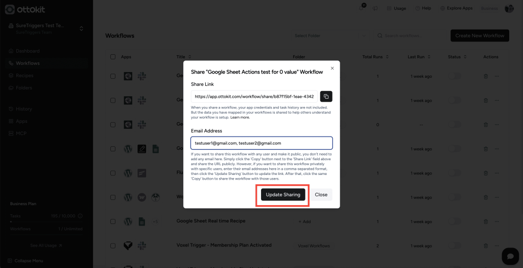 In this guide, we’ll walk you through how to use this feature to share your workflow with others, and we’ll also explain how others can set up the shared workflow in their own OttoKit account.