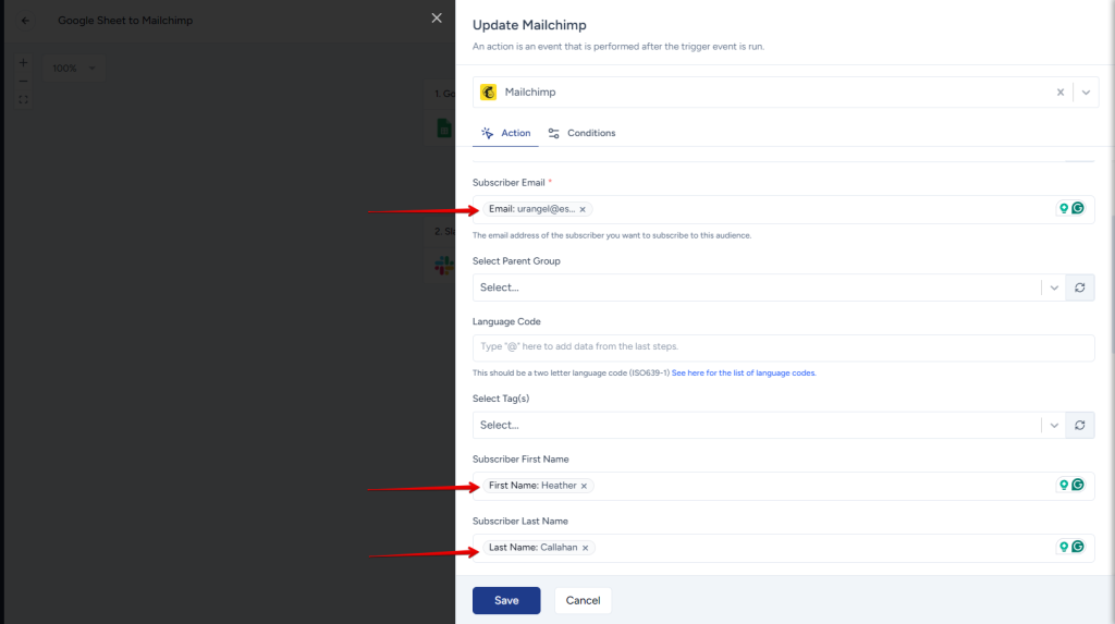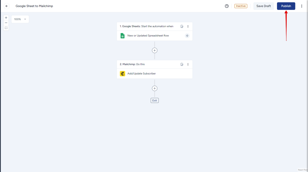 We’ll understand this by creating a simple workflow to add new Mailchimp subscribers when new rows are added in Google Sheets.