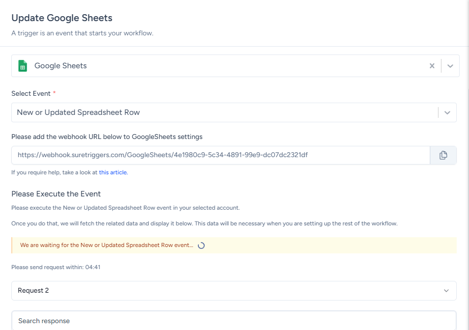 This option helps you execute workflows when any row is added to your spreadsheet.