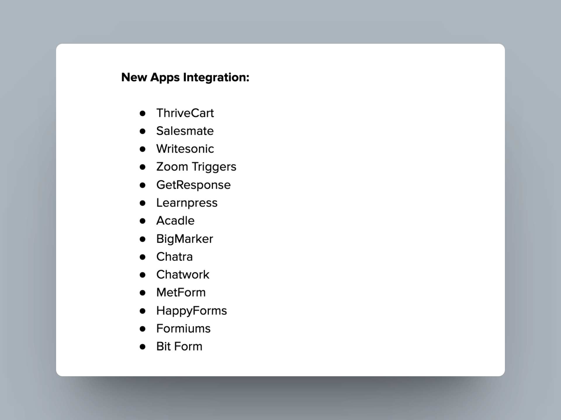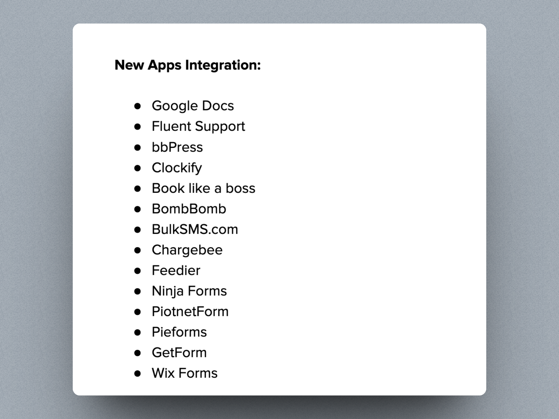 Well, you’ll find popular apps such as Google Docs, FluentSupport, Chargebee, bbPress, etc. in our updated list of integrations.