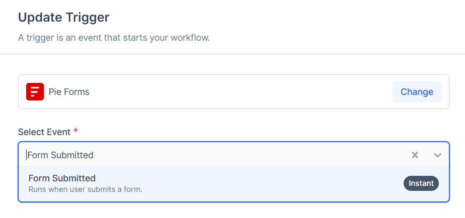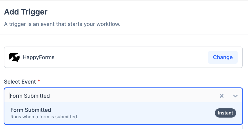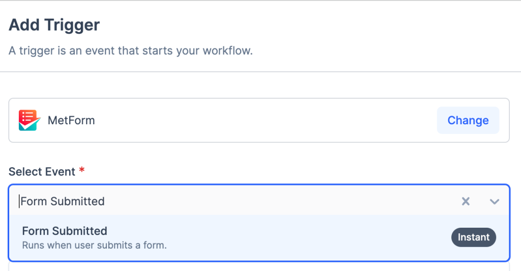 For these form applications, we have added ‘Form Submitted’ event as a trigger. This means that when someone fills out a form, OttoKit can capture that data and pass it on to other apps.