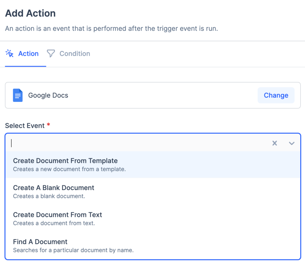 For e.g. When a new lead is added to your CRM, you can automatically create a new Google Doc that includes a summary of their contact information, notes from your sales team, and the next steps.
