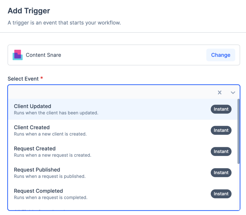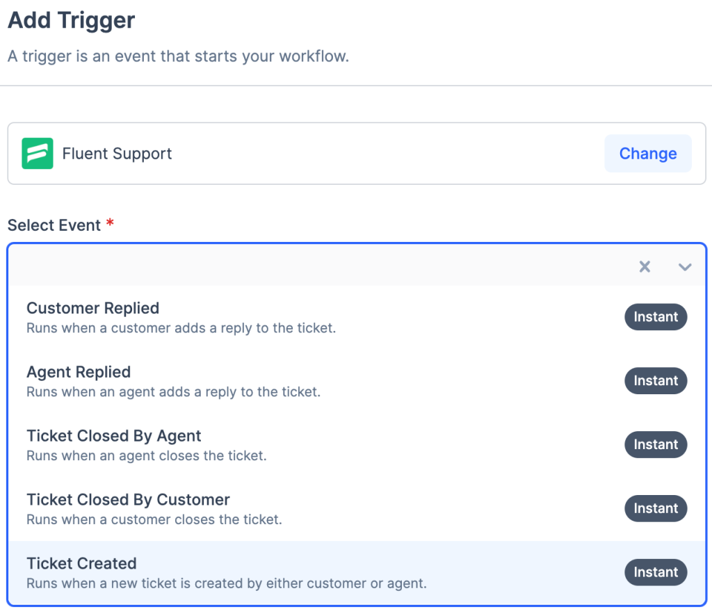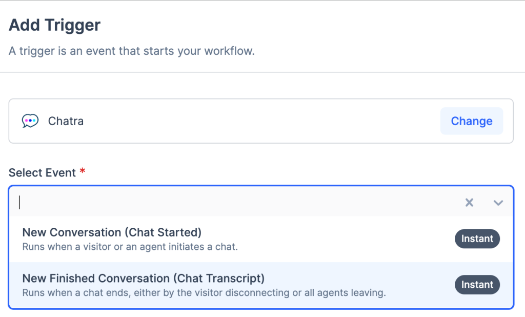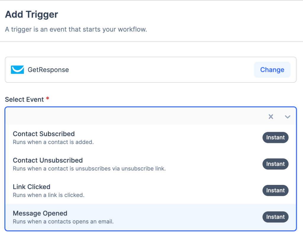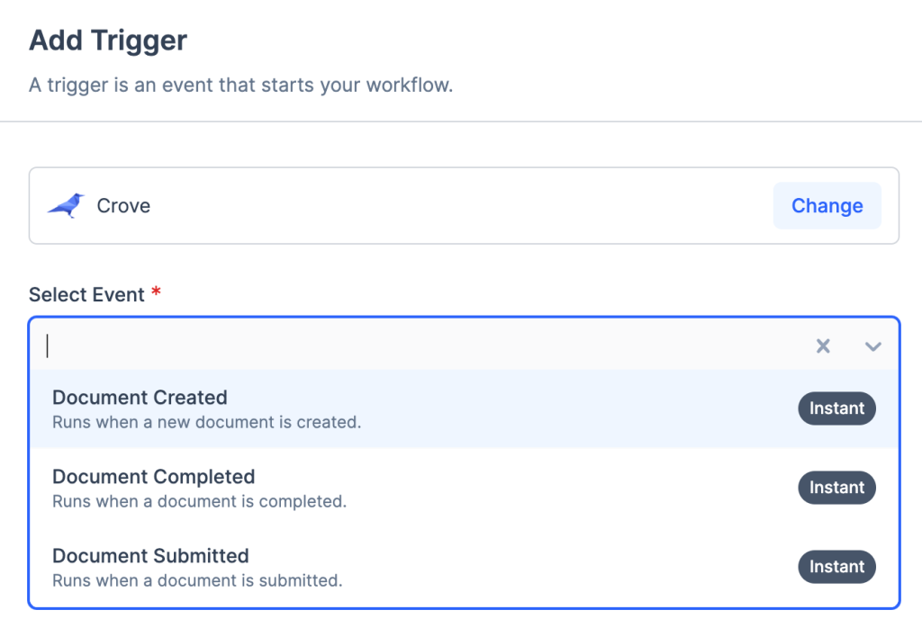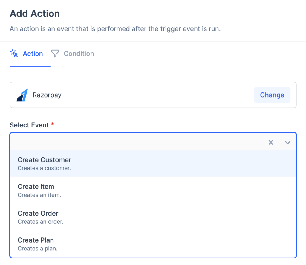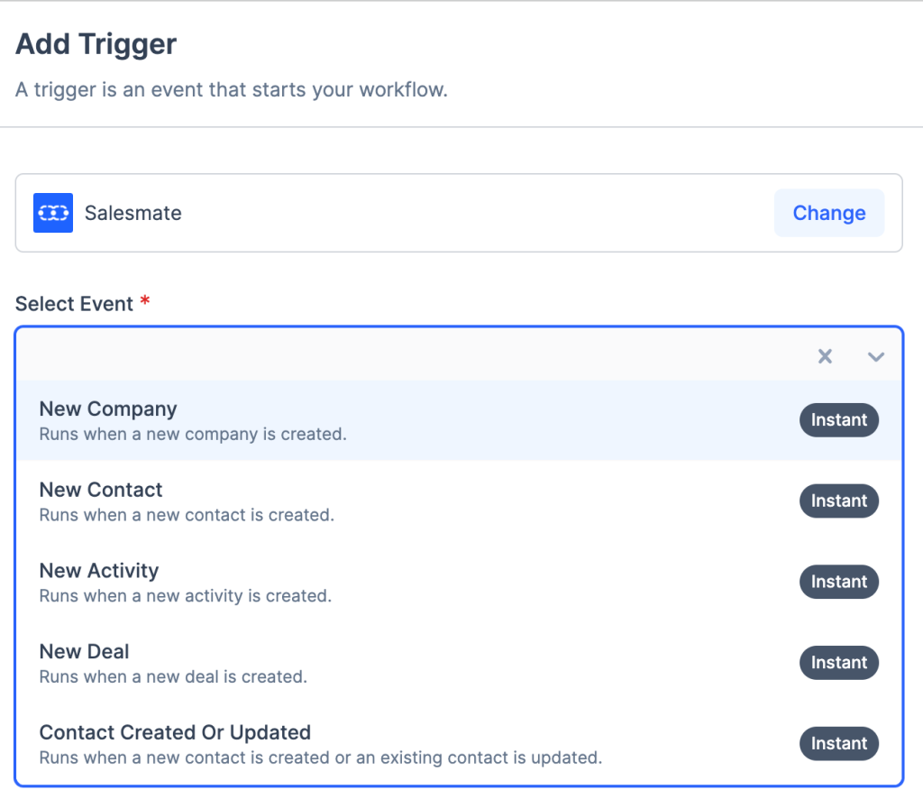 For e.g. when a new subscription is created in Chargebee. You can use this trigger to automate tasks such as creating a new customer entry in your CRM system or sending a welcome email to new subscribers.