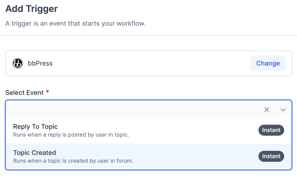 For instance, you can now set up a workflow to notify your team members or customers whenever a new post or thread is created in your bbPress forum.